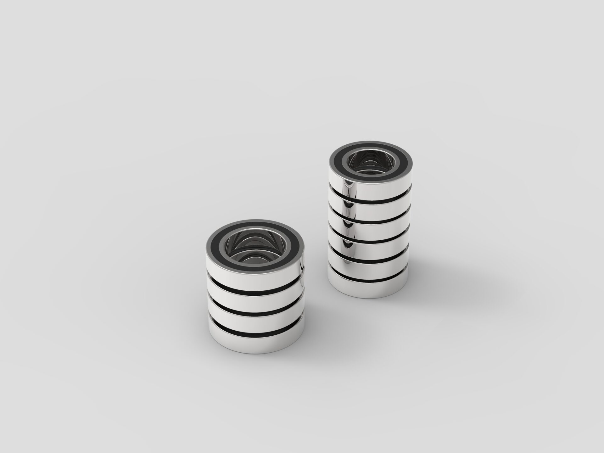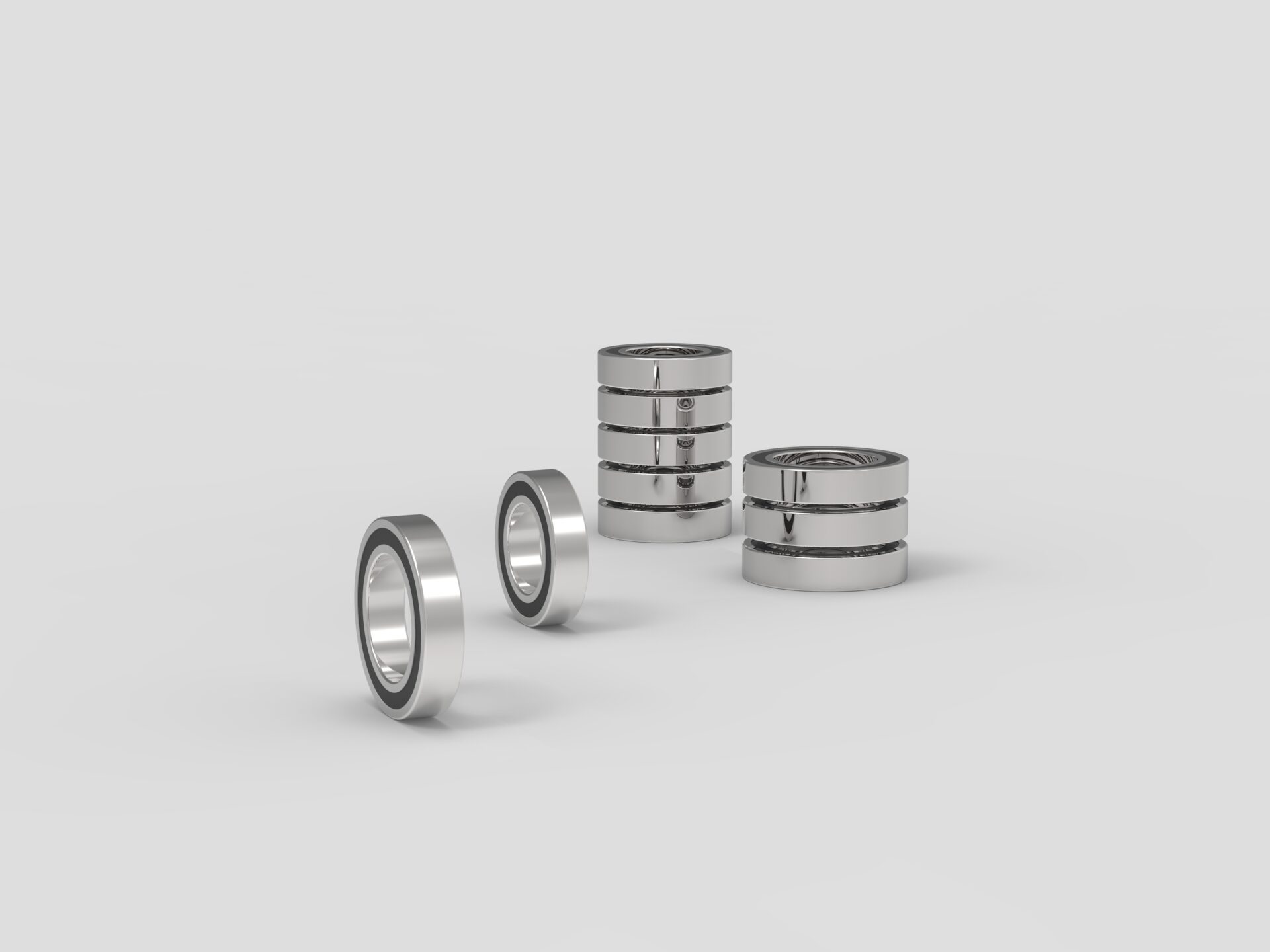 Possui os dois modelos de rolamentos, sendo eles 4 da versão menor e 6 da versão maior.